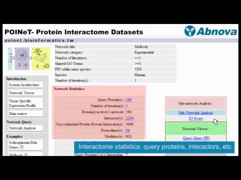 Protein-protein interactions (PPIs) are critical to every aspect of biological processes. Even though a number of software tools are available to facilitate PPI network analysis, an integrated tool is crucial to alleviate the burden on querying across multiple web servers and software tools. POINeT, an integrated web service, have been constructed to simplify the process of PPI searching, analysis, and visualization. More videos at Abnova ( http://www.abnova.com ).